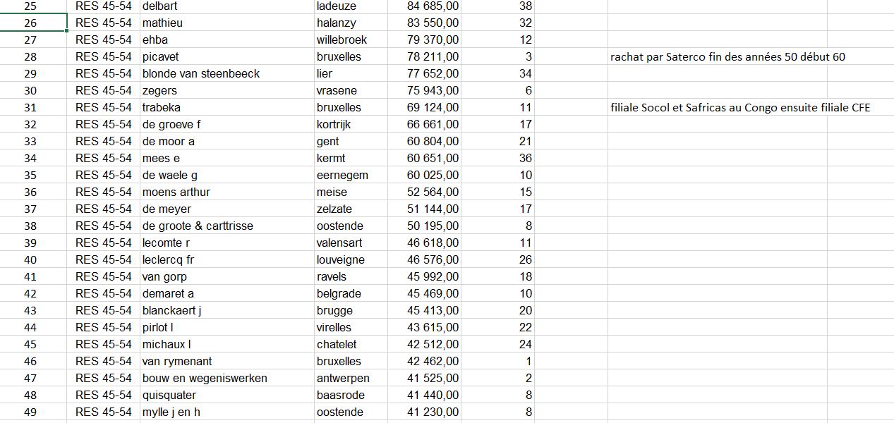 Je n'ai pas beaucoup de résultats pour les années 1955 à 1956.(si quelque sait ou je peux en trouver….) Pour la période 1967 à 1985 je dois avoir environ 2.500 (travaux publics uniquement) Pour tous les résultats j'ai le lieu,le type de chantier et pratiquement tous les résultats. Si cela vous intéresse intéresse je pourrais les mettre sur le site . Bonne lecture